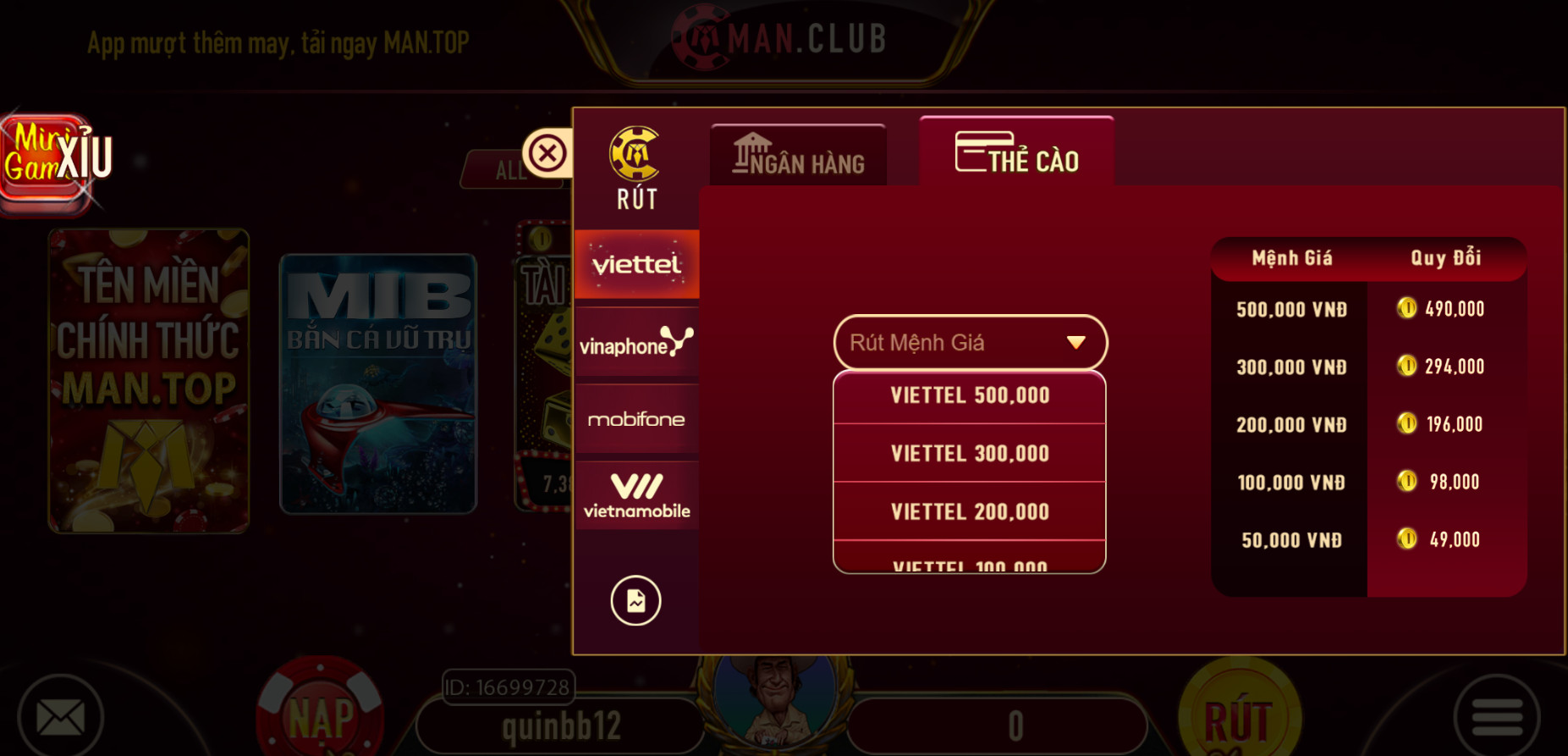 Cách thức nạp tiền MANCLUB nhanh chóng chỉ cần 1 phút thực hiện